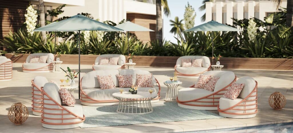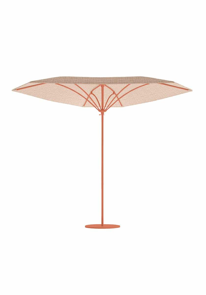 | Product Notes | Arms and ribs are extruded aluminum with an extra thick wall to provide strength and durability. Finial is cast aluminum and painted to match the frame color. Umbrella base sold separately. Striped or Marine Grade Fabrics are not available. |