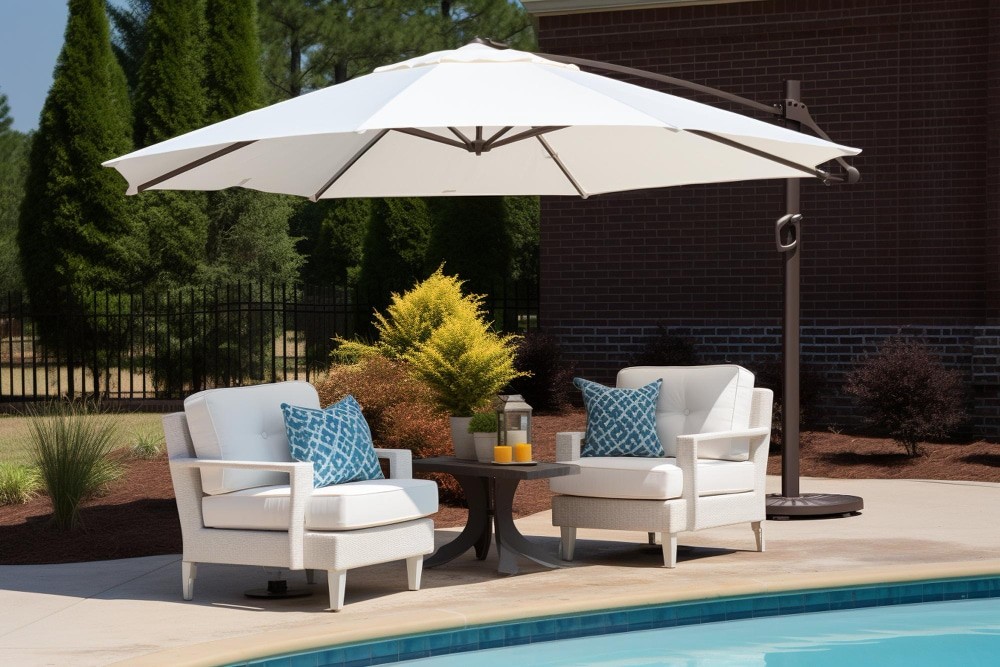 Center pole umbrellas are commonly used in dining areas where tables provide natural support for placement. Cantilever designs offer more flexibility by removing the central obstruction, allowing for uninterrupted seating arrangements.